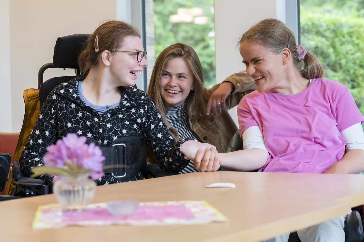 Melinda Ellmenreich und Nicole Brinkmann haben an diesem Nachmittag ausgesprochen gute Laune. Das liegt zum einen daran, dass sie noch in Urlaubsstimmung sind, die beiden jungen Frauen sind gerade aus einer gemeinsamen Ferienfreizeit in West-Bargum an der Nordsee zurückgekehrt. Dort haben sie sich sogar ein Zimmer geteilt. Künftig werden die beiden Freundinnen zwar nicht das Zimmer, sich aber immerhin die Wohnung teilen: Sie werden in eine der drei Wohngemeinschaften für Menschen mit Behinderung im neuen Graf Recke Quartier Neumünster einziehen. Und das ist ebenfalls ein Grund zur Freude.
