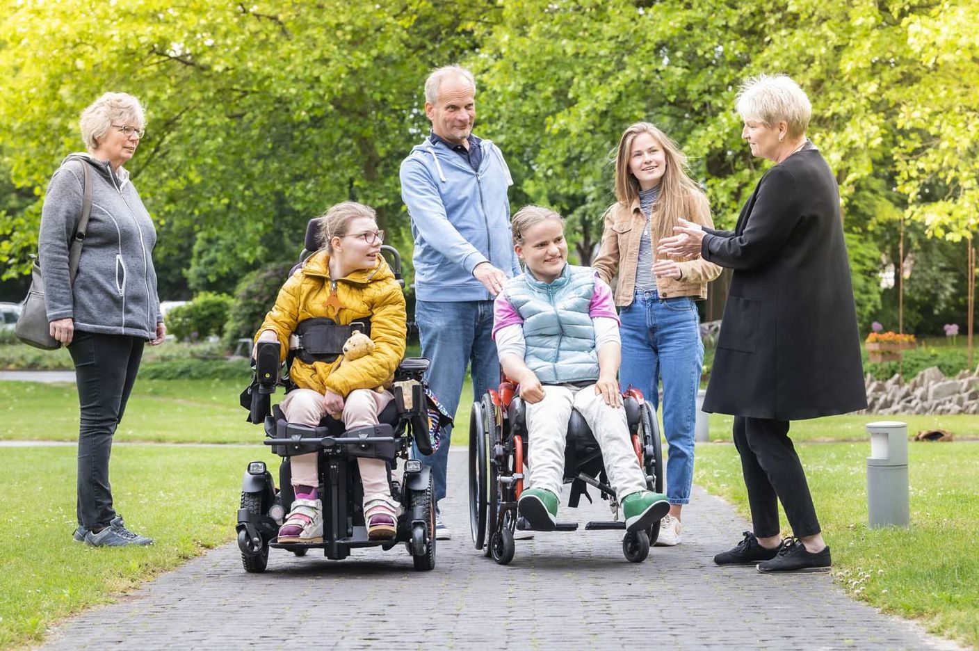 Das gilt auch für Nicole Brinkmann, ihre beste Freundin. Die 21-Jährige wohnt bislang mit ihrer Mutter und ihrem jüngeren Bruder zusammen, und freut sich sehr auf das Zusammenwohnen mit ihren Freundinnen, wie sie sagt. Neben Melinda ziehen auch Julia, Luna und Cathrin mit in die WG ein. Noch habe sie das Zimmer nicht gesehen, sagt sie. Im Rohbau fehlte bislang der Aufzug für den Rollstuhl. Ist der erst einmal installiert, wird aber vieles leichter. „Dann können sich alle Rolli-Fahrerinnen gegenseitig besuchen“, wie ihre Mutter Anke Brinkmann zufrieden anmerkt.