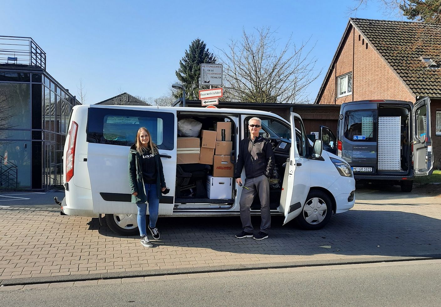 Geschäftsbereichsleiter Mertens sagte seiner Mitarbeiterin nach Rücksprache mit Stiftungsvorstand Petra Skodzig zu, dass diese den Kleinbus der Graf Recke Erziehung & Bildung nutzen und auf Stiftungskosten betanken dürfe, um sich auf den Weg Richtung Ukraine zu machen. Er schaltete Stiftungspfarrer Dietmar Redeker ein, der die Spendenaktion gemeinsam mit Nicole Tatura organisierte und eine Liste an benötigten Gütern zusammenstellte. Nachdem der Spendenaufruf am Mittwochnachmittag über verschiedene Kanäle in der Graf Recke Stiftung und der Nachbarschaft verbreitet worden war, hieß es schon am Mittag des nächsten Tages: „Der Transporter ist voll!“