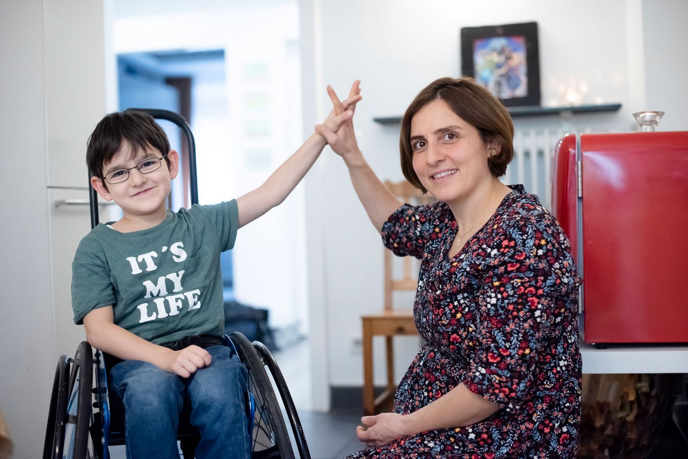 Und das tut sie: „Ich mag Teresa gern, weil sie für mich da ist“, sagt Metin mit Überzeugung. So kümmert sich die Inklusionsbegleiterin etwa um die Grundpflege bei dem Sechsjährigen, achtet darauf, dass er genügend trinkt und regelmäßig steht. Oder sie denkt sich Alternativen aus, wenn die anderen Kita-Kinder klettern oder rennen. Die beiden sammeln dann gemeinsam Blätter im Garten oder malen ein Bild, zuletzt von einer Eule, wie Metin erzählt. Dennoch gehöre ihr Sohn in der Gruppe ganz selbstverständlich dazu, freut sich Salihe Cürünay. Das habe auch mit Inklusionsbegleiterin Teresa zu tun, die den Fokus auf die Stärken ihres Kindes lege, „die Schwächen kennen wir ja schon“. Sie lacht.