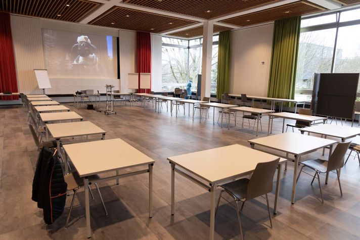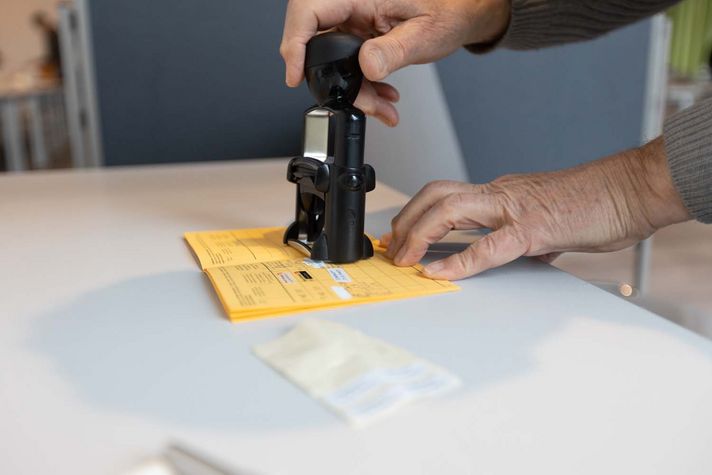 Währenddessen ist "Türsteher" und Leiter der Graf Recke Erziehung & Bildung, Michael Mertens, am Eingang mit Neuankömmlingen beschäftigt. Die Impfungen sind im Fünf-Minuten-Takt geplant. Trotz aller Organisation: Eine kleine Schlange bildet sich immer mal wieder, denn zu dem Termin will niemand zu spät kommen. Er weist den Kindern und deren Begleitpersonen den Weg die Treppe hoch, wo zwei Ehrenamtliche die Krankenkassenkarten einlesen und die vorher zum Ausfüllen versendeten Papiere durchsehen.