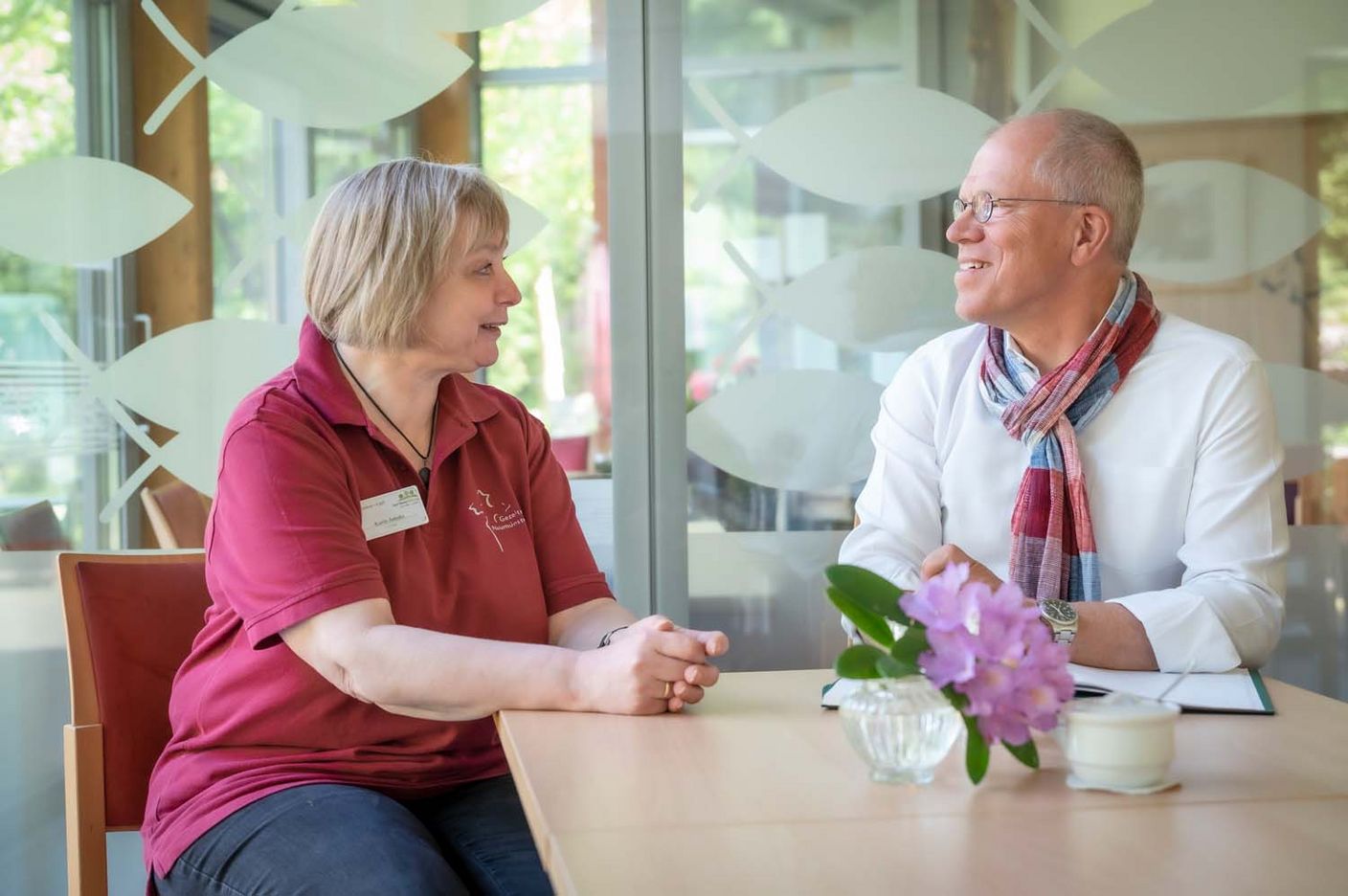 Das kommt nicht von Ungefähr: Die hauswirtschaftliche Betriebsleiterin, zuvor unter anderem in der Jugendarbeit und für den „Internationalen Bund“ im Catering tätig, wollte „schon immer ein Café haben, Gastgeberin sein“, wie sie verrät. Als sie vor gut zehn Jahren dann die Stellenanzeige fürs neue Gezeiten-Café in der Zeitung entdeckte, sah sie ihre Chance gekommen. Im Prinzip habe man ihr bei der Ausrichtung freie Hand gelassen, und der Erfolg gibt ihr Recht: „Wir haben viele Stammgäste und offenbar vieles richtig gemacht“, meint sie und lächelt.