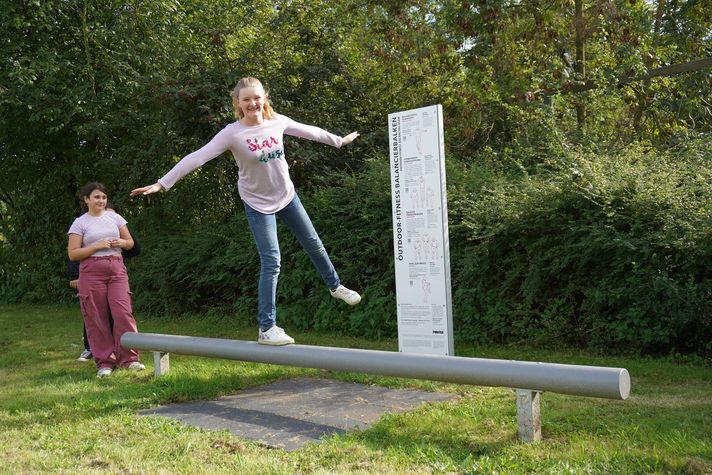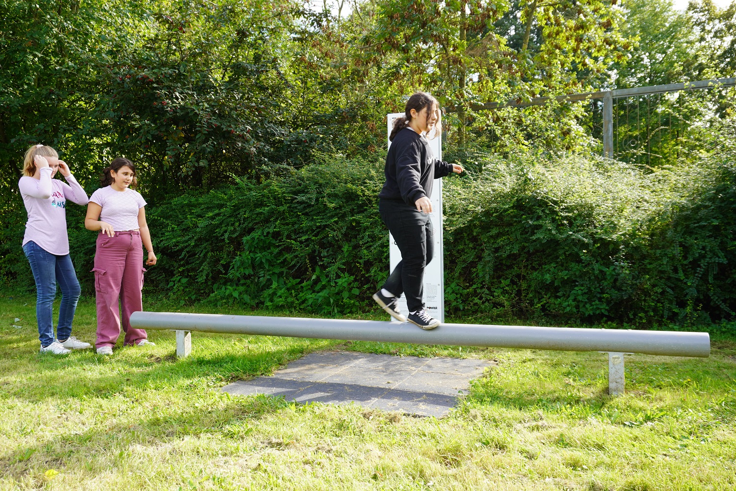 Seit neuestem ergänzt ein Balancierbalken das Spiel- und Bewegungsangebot für Kinder und Jugendliche, die von der Graf Recke Stiftung im Düsseldorfer Norden betreut werden. Ermöglicht wurde die Anschaffung für den Trimm-dich-Pfad durch eine gemeinsame Spendenaktion der Deutschen Apotheker- und Ärztebank und ihrer Mitarbeitenden, die damit einen wichtigen Beitrag für die körperliche und mentale Gesundheit von Kindern und Jugendlichen mit Unterstützungsbedarf leisten.