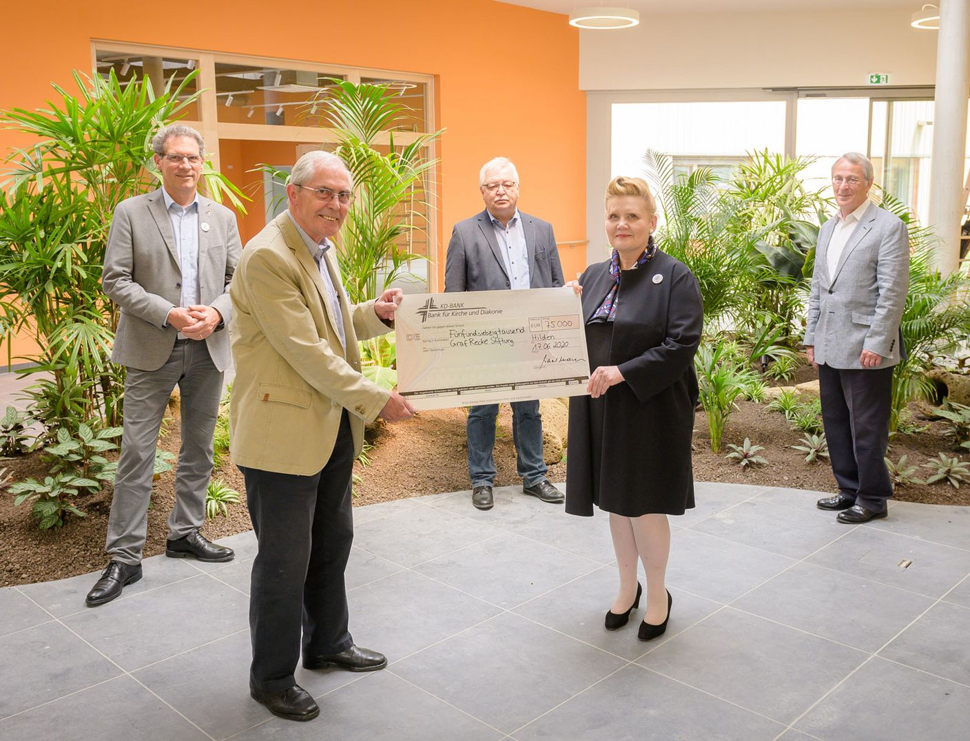Seit vielen Jahren unterstützt die Matthias-Brock-Stiftung die Arbeit der Graf Recke Stiftung im Bereich der Altenhilfe in Hilden. Zuletzt wurde ein weiterer großzügiger Spendenscheck für das zukunftsweisende Leuchtturmprojekt Ahorn-Karree im Dorotheenviertel Hilden überreicht. Das Ahorn-Karree ermöglicht 119 Menschen mit schwerer Demenz ein würdevolles Leben in Individualität und Gemeinschaft.