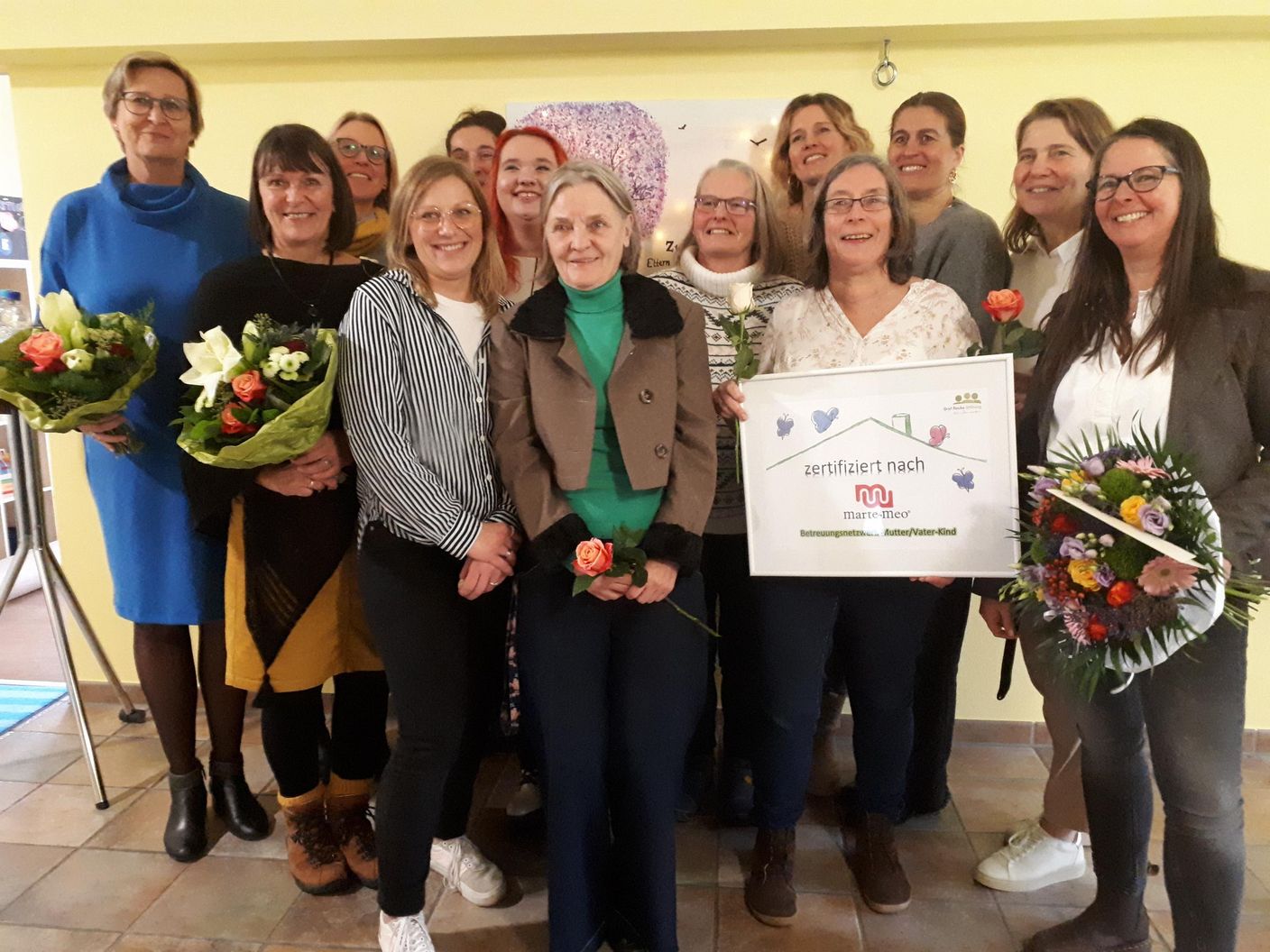 Marte Meo – so heißt eine von der Niederländerin Maria Aarts entwickelte Methode, bei der Video-Aufzeichnungen zur Verhaltensbeobachtung und Persönlichkeitsentwicklung, insbesondere im Umgang mit Kindern, genutzt werden. Im Betreuungsnetzwerk, in dem aktuell acht Mütter und ein Vater mit ihren Kindern leben, nutzt man das Programm seit 2016. Nach positiven Erfahrungen von Beginn an wurde die Arbeitsweise stetig erweitert und vertieft. Alle aktuell 14 Mitarbeitenden verfügten mindestens über Grundkenntnisse, jeder Neuzugang werde entsprechend geschult, betont Teamleiterin Andrea Prinz. Die Folge: Als erste Einrichtung dieser Art in Deutschland werde man nun in der Gesamtheit offiziell nach Marte Meo zertifiziert. Sie sehe das „als Erfolg für das ganze Team“.