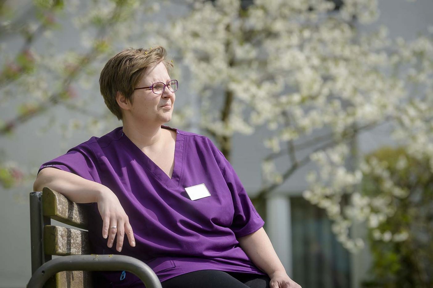 Ich habe das Gefühl, dass die Quarantänezeit noch nachwirkt«, berichtet Petra Steinmann, Yvonne Kraus’ Kollegin auf dem Wohnbereich. Insbesondere, da vier Kolleginnen und Kollegen einen schweren Krankheitsverlauf hatten, daher zum Teil monatelang ausfielen. Die Belastung war enorm, auch die Sorge um die Kolleginnen und Kollegen war groß, sagt die 58-Jährige. Wie schon bei den Reihentests im Mai 2020 zeigten auch die später eingeführten Schnelltests, dass immer wieder Menschen ohne Symptome positiv waren. »Das war für mich erschreckend«, gesteht die erfahrene Pflegerin. »Wir haben jeden Tag vor unserem Testergebnis gezittert.«